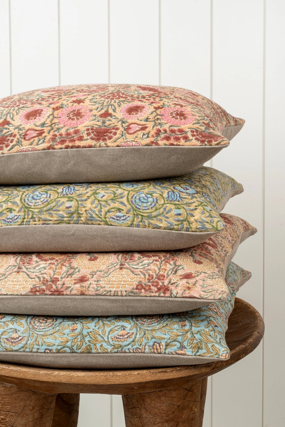 Bring the beauty of the garden into the home with this textural hand block printed pillow. Rich in color and handcrafted style, it is sure to brighten any space. Each pillow includes a premium Responsible Down Standard (RDS) certified feather/down filler, meaning you are choosing ethical practices as well as beautiful design.